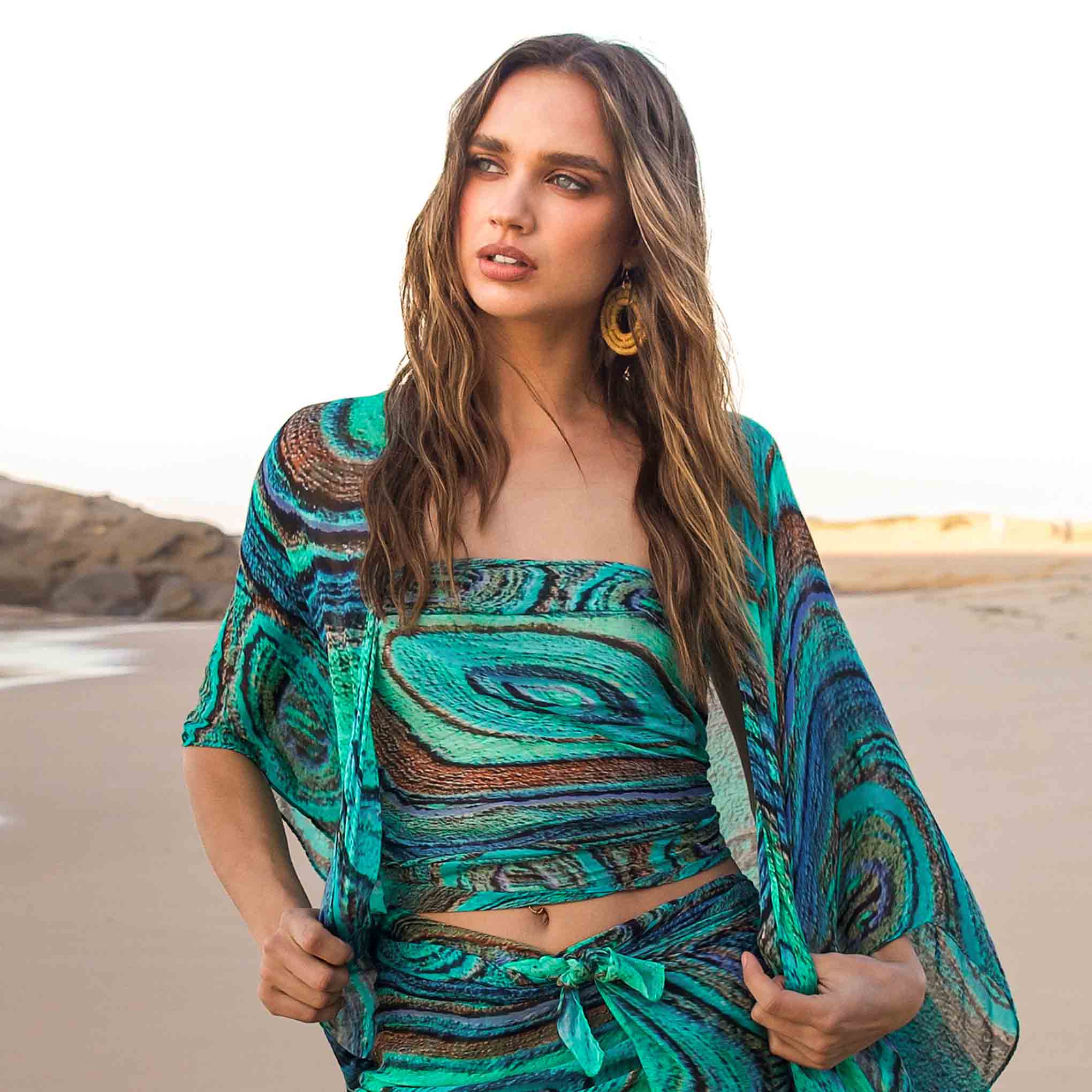 These stunning open kaftan designs are created for you from fine artworks by renowned Indigenous artist Saretta Fielding. Combine a sophisticated drape shape and breezy open front with a stunning artwork print for easy elegance!